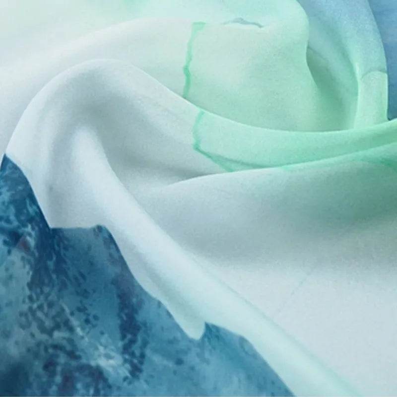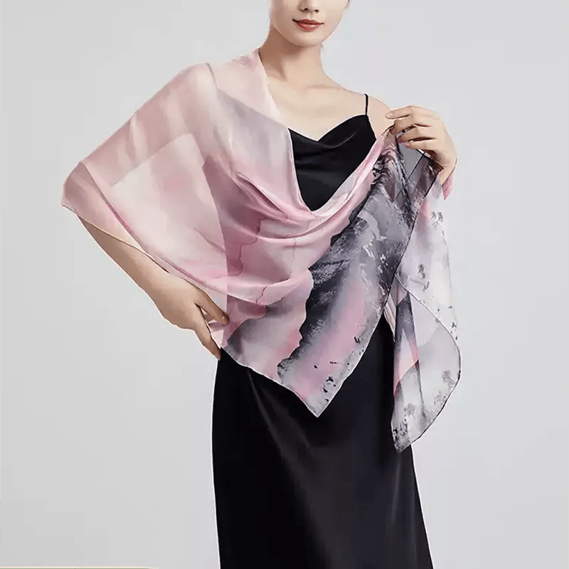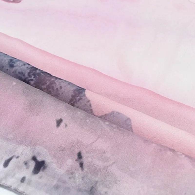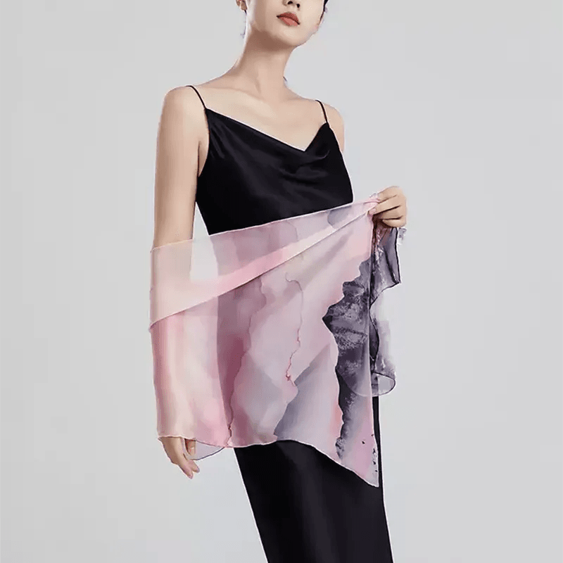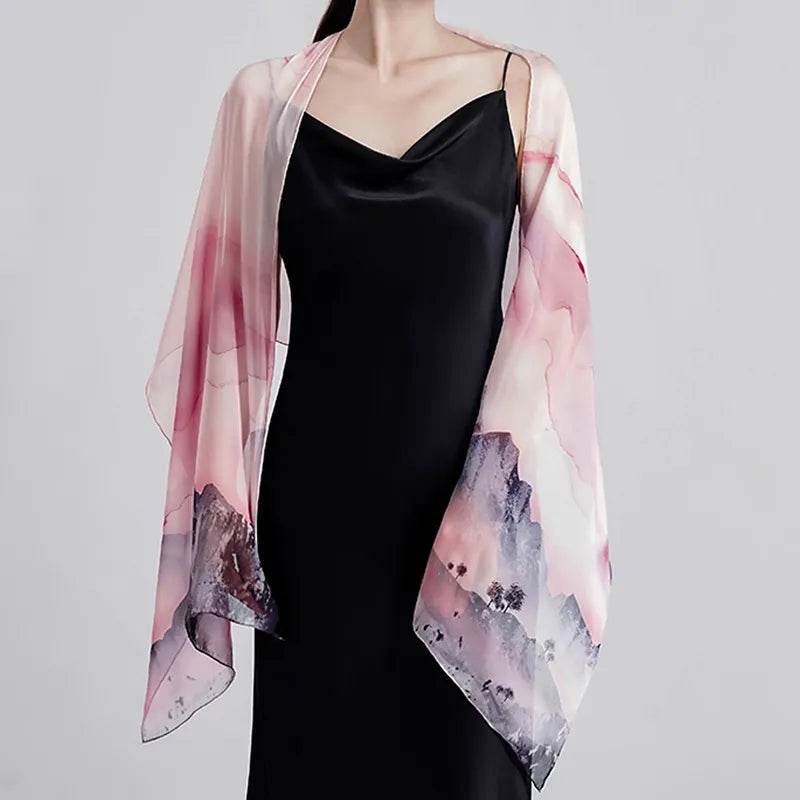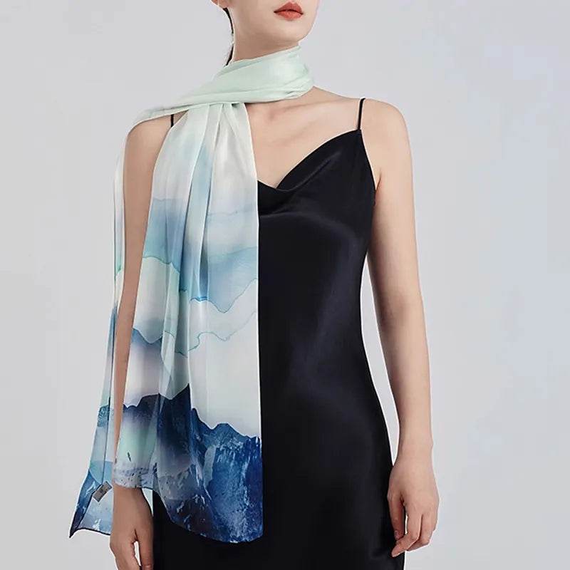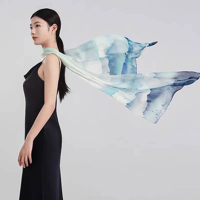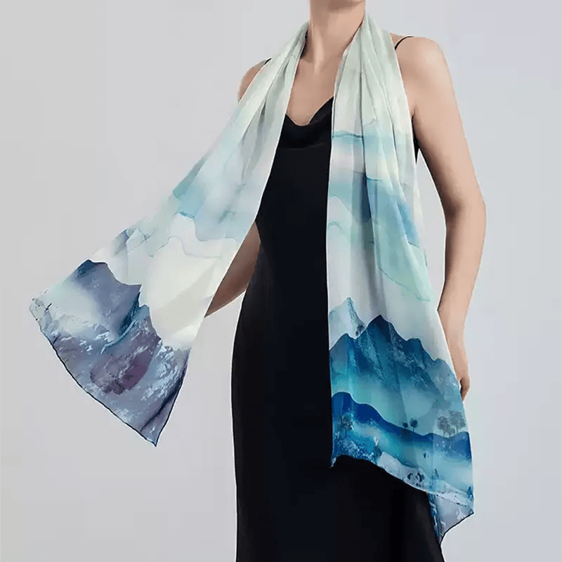 100% Mulberry Silk Ink Wash Landscape Design Long Scarf 180 x 50 Cm