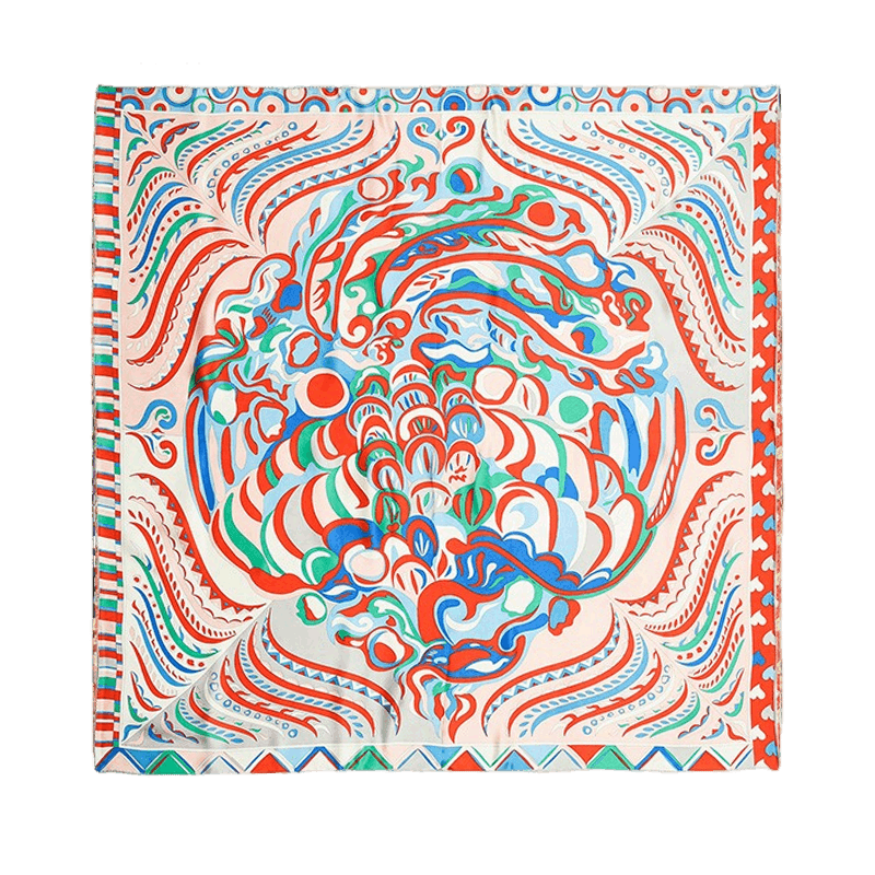 Indulge in timeless elegance with our Jade Phoenix Pattern Silk Scarf, meticulously crafted to echo the intricate beauty of traditional jade artistry. Inspired by the square box’s design, the scarf showcases a delicate palette of pale green-white with subtle yellow hues, reminiscent of natural jade veining. Its design features an arched lid adorned with finely carved double phoenix and cloud motifs, embodying cultural sophistication and artistic finesse.