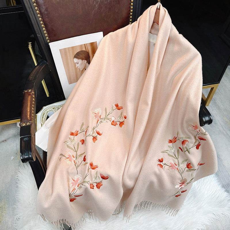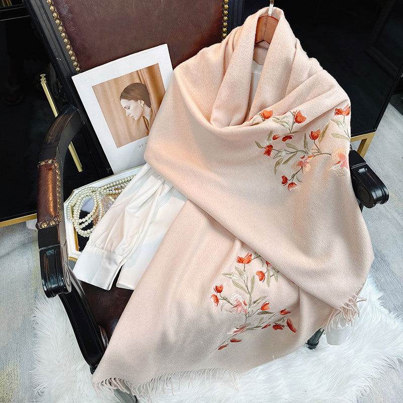 Embroidery 100% Pure Cashmere Scarf Elegant Winter Accessory 200×60 cm