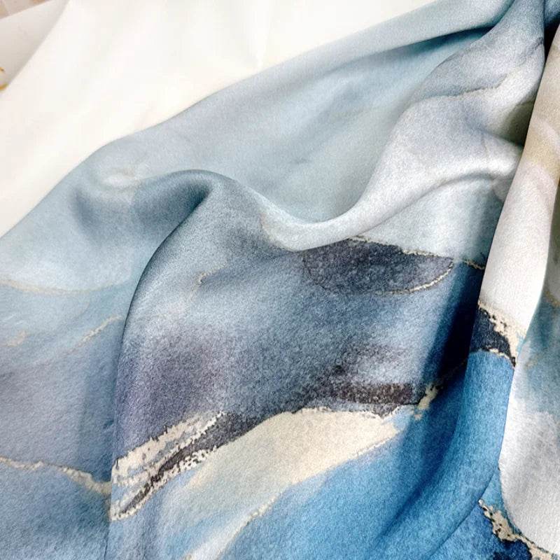 【Heavyweight Mulberry Silk】This product is made from 14-momme heavyweight mulberry silk. The texture is smooth and delicate, with a silky and natural drape. The luster is warm and subdued, creating a subtle and elegant touch, and allowing the print to exude vibrancy and sophistication.